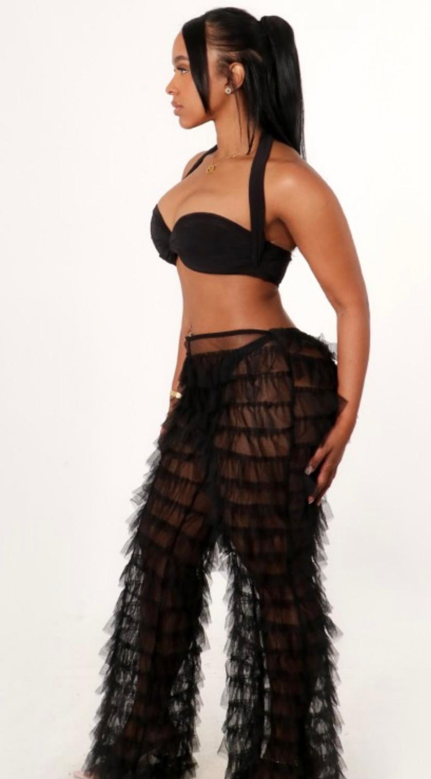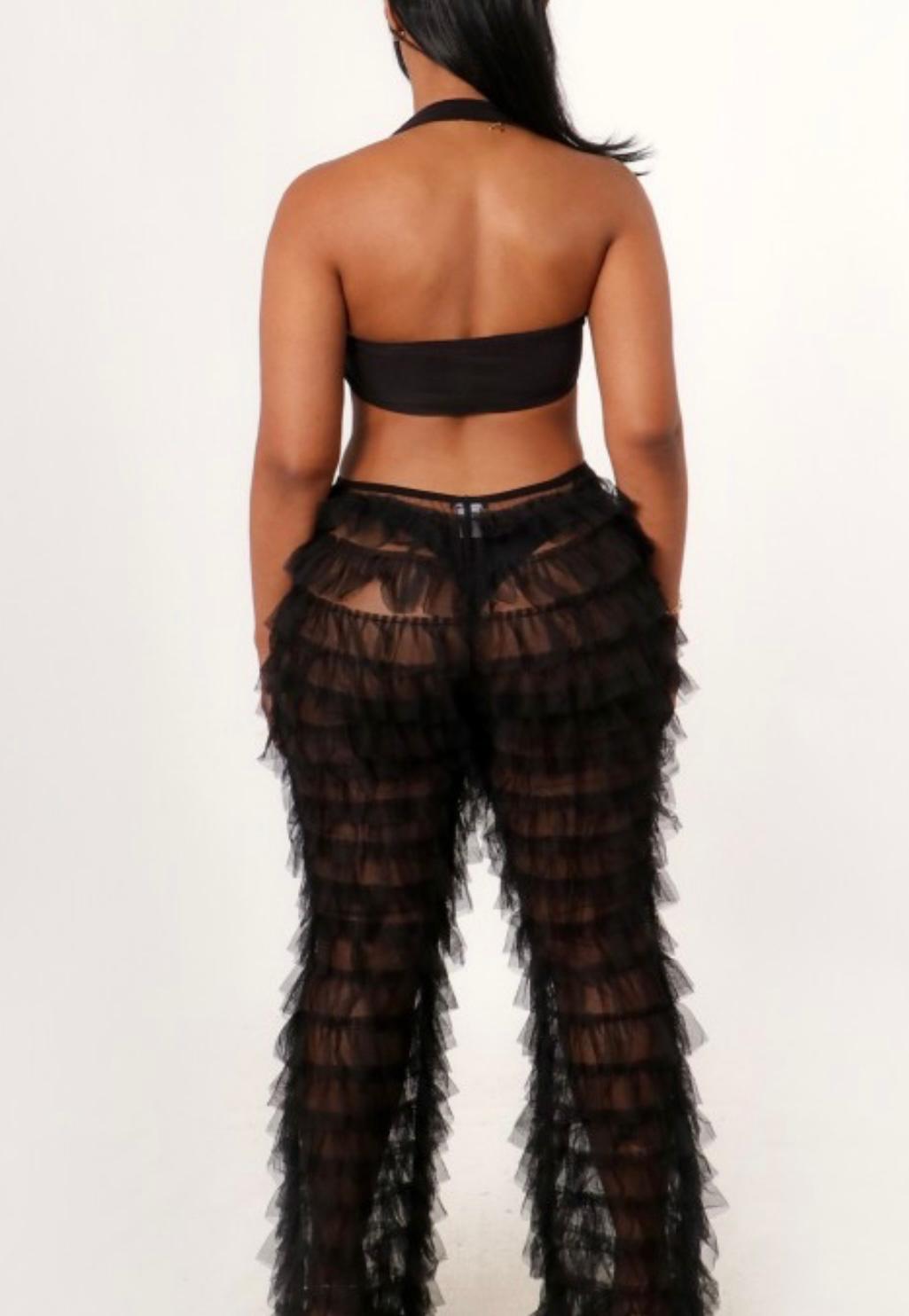 Tiered Ruffled Tulle Cover Up Pants