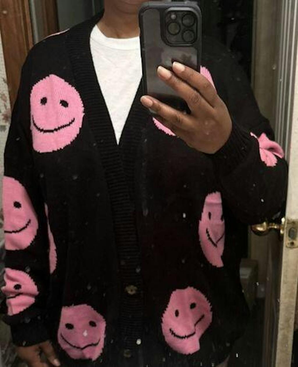 This cardigan is just like the picture. Great quality and the shipping was fast. Also the merchant was very kind and thoughtful to include a discount card on to use on my next order, as well as a thank you note and a free item. I highly recommend.